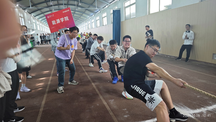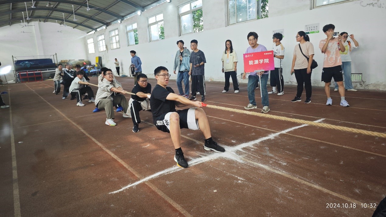 拔河项目在热烈的掌声和欢呼声中拉开了帷幕。来自不同学院和年级的代表队齐聚操场,准备在这场力量与团队协作的较量中一展身手。随着裁判的一声哨响,比赛正式开始。能源学子们紧握绳索,身体后仰,全力以赴地将对方拉向自己的方向。绳子中间的红色标记带在双方的拉扯下左右摇摆,每一次移动都牵动着观众的心。经过一路的过关斩将,连胜三局,晋级四强,直播 队不畏强敌,坚持拼搏的身影赢得了所有观众的喝彩。