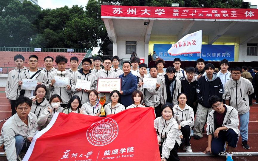 10月19日下午,校运会圆满闭幕。为期两天的比赛,在学院师生的共同努力下,直播 在本届学生运动会中以成绩总分87.5分取得历史性突破,位列第十,女子团体总分第七首次进入全校前八,再次摘得道德风尚奖,充分体现了能源人团结、拼搏、奋进的精神。