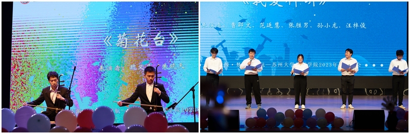 在苏大学习的日子里,老师们辛勤耕耘、默默付出,无时无刻不守候在我们身边,在这别离的时刻,沙书记带领全体学工团队,将祝福融入《昨日重现》和《你曾是少年》的歌声中,孙靖宇教授与吴梓烨同学的串烧曲目《我们一起唱过的歌》,让我们毕业不悲伤,青春不散场,一同拉开了第一篇章“承继·云程发轫”的序幕。