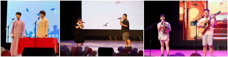一袭长衫立台上,说学逗唱众人赏,一把折扇染诗意,一副快板响朝夕。传统曲艺的再度演绎,古典诗词与现代音乐的碰撞,无不体现着中华传统文化的博大精深。陆云飞、秦柏杨同学带来的相声表演《铿锵竹韵》;李乐、廖善永为大家带来的歌曲《凉凉》,向我们展示了传统文化的精彩。大学四年的时光不仅有欢声笑语,还有着诸多遗憾与不舍。杨东子、张亮同学为我们带来的吉他弹唱串烧《凄美地》和《想去海边》,让我们忆往昔,更看今朝。