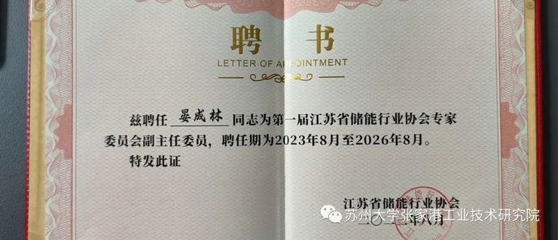 8月4日下午,江苏省储能行业协会专家委员会一届一次会议在南京顺利召开。来自科研院所、高校、企业等储能相关领域100余名专家学者及代表参加了会议。我院院长晏成林教授当选第一届江苏省储能行业协会专家委员会副主任委员。