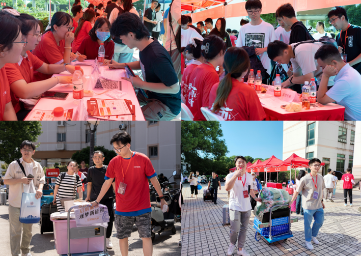 迎着清晨的第一缕阳光,直播 迎来了2023级第一位新研究生,迎新团的工作开始热火朝天起来。从校门口到注册点,从宿舍楼到生活用品购买处,随处都可以看到身穿迎新服装的志愿者们。志愿者们热情洋溢、有条不紊地带领新生办理报到、注册等各种手续,帮助他们搬运行李,为新生送去学院的温暖与关怀。