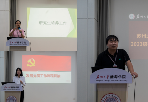 紧接着,教务主任王晓燕老师、实验室安全员王晓东老师和组织员顾燕老师分别从研究生培养工作、实验室安全事项以及研究生党员发展流程做了细致解读。