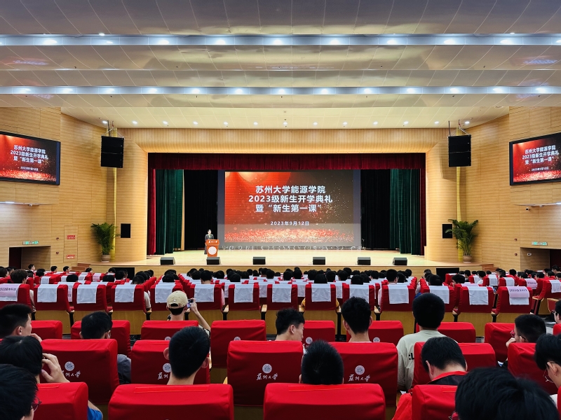 为了全方位推进课程思政建设,健全“三全育人”大格局,提升能源学子“强国有我”的时代担当,9月12日下午13时,苏州大学直播 2023级新生开学典礼暨“新生第一课“在校本部存菊堂隆重举行。中国科学院院士刘忠范,直播 党委书记沙丹丹,副院长王海波、包军、彭扬、杨瑞枝,特聘教授邹贵付、孙靖宇、韩东麟以及学院师生代表出席了本次开学典礼。开学典礼由直播 党委书记沙丹丹主持。