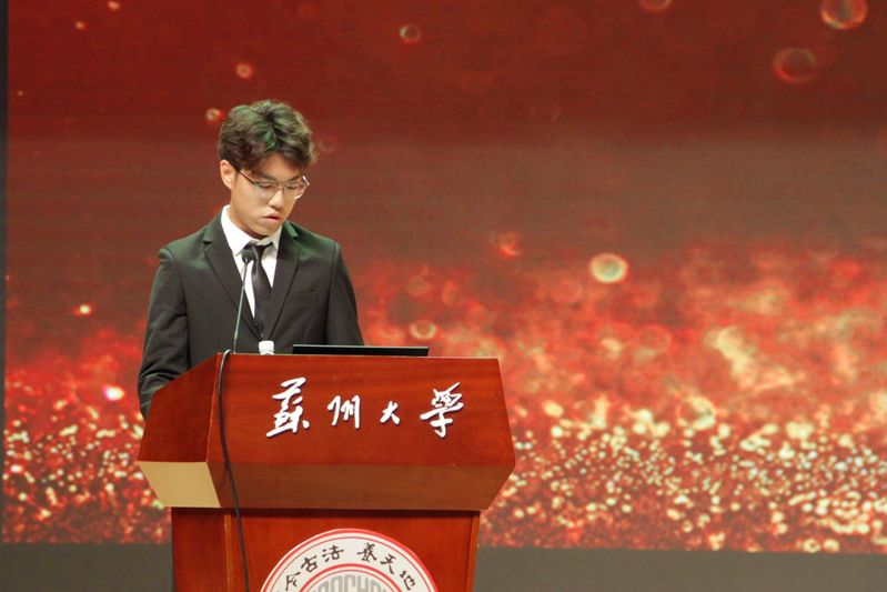 2020级新能源材料与器件(中外合作办学)专业的优秀学长王骏昌作为老生代表发言,他讲述了进入直播 后的学习生活,鼓励各位新生做好大学四年规划,勇于直面挑战,积累学习经验,在毕业时向自己交出一份满意的答卷。