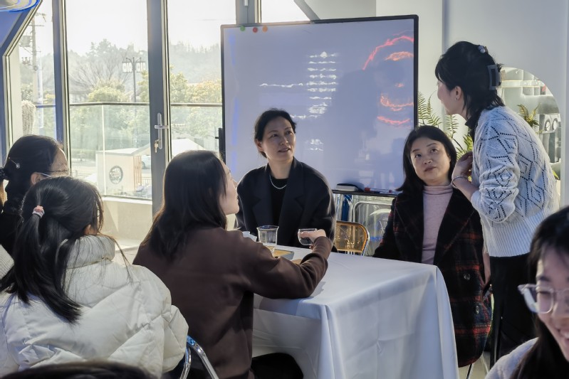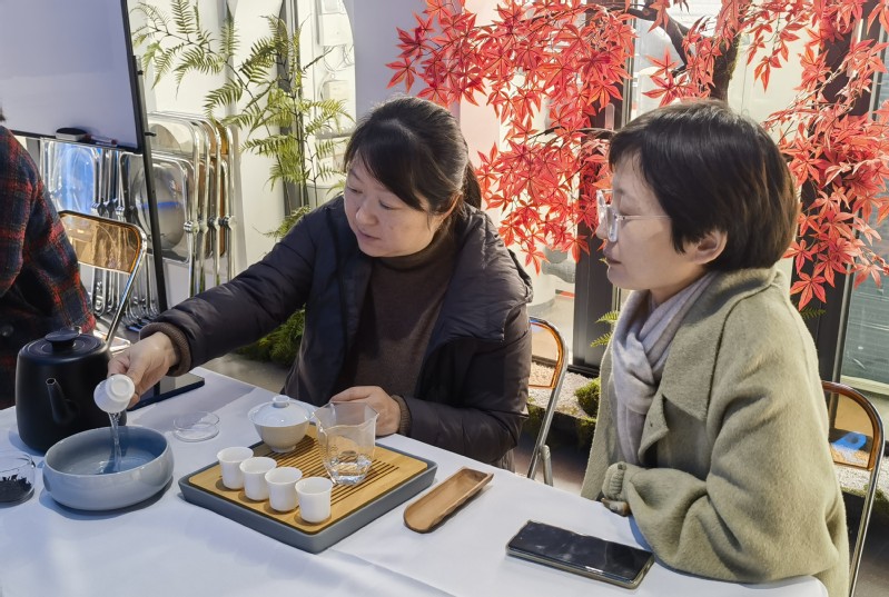 在初齐茶室三楼,茶艺师表演了乌龙茶的冲泡演示,并对茶艺进行了讲解,让各位女老师品鉴了四种单枞乌龙茶:鸭屎香,水仙,八仙,芝兰。大家兴致勃勃地体验感受茶艺文化的工艺韵味。